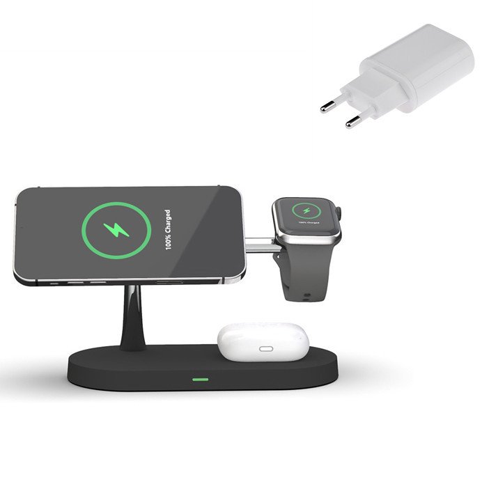 Meet the Three-in-One Smart Magnetic Wireless Charger — your all-in-one charging solution for your smartphone, smartwatch, and wireless earbuds. Sleek, fast, and intelligent — it keeps your devices powered up efficiently while adding a modern, minimalist touch to your desk or nightstand.